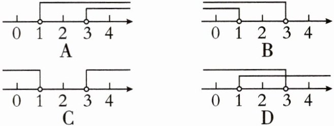 4. 已知点$P(m - 3,m - 1)$关于$y$轴的对称点在第一象限,则$m$的取值范围在数轴上表示正确的是(