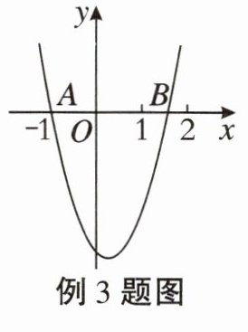 例3 如图,抛物线$y = ax^{2}+bx + c$经过点$A(-1,0)$,$B(m,0)$,且$1 < m < 2$。有下列结论:①$b < 0$;②$a + b > 0$;③$0 < a < -c$;④若点$C(-\frac{2}{3},y_{1})$,$D(\frac{5}{3},y_{2})$在抛物线上,则$y_{1} > y_{2}$。其中正确的结论有 (