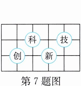 7. 为培养青少年的科学态度和科学思维,某校创建了“科技创新”社团.小红将“科”“技”“创”“新”写在如图所示的方格纸中,若建立平面直角坐标系,使“创”“新”的坐标分别为$(-2,0),(0,0)$,则“技”所在的象限为(