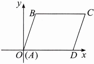 8. 已知平行四边形的对边平行且相等.以平行四边形ABCD的顶点A为原点,直线AD为x轴建立平面直角坐标系,如图,已知B,D两点的坐标分别为$(1,3),(4,0)$,把平行四边形向上平移2个单位长度,那么点C平移后的对应点的坐标是 (