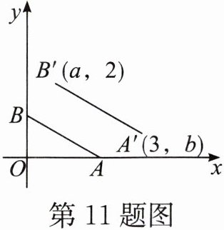 11. 如图,在平面直角坐标系中,点A、B的坐标分别为$(2,0),(0,1)$,将线段AB平移至$A'B'$,那么$a+b$的值为____