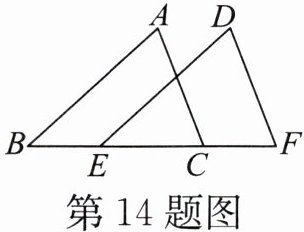 14. 如图,将三角形ABC沿BC向右平移得到三角形DEF,若BC= 5,BE= 2,则CF的长是(