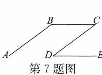 7. 如图,AB//DC,BC//DE,∠B= 145°,则∠D的度数为(