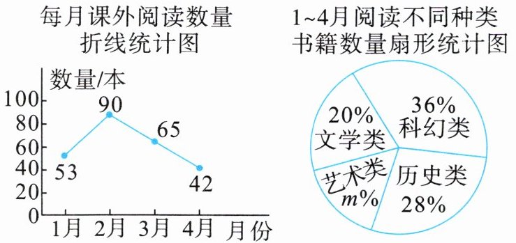 6. 某中学七年级一班同学统计了今年1~4月全班同学的每月课外阅读数量及阅读不同种类书籍数量,据此绘制了如下统计图,下列判断正确的是 (