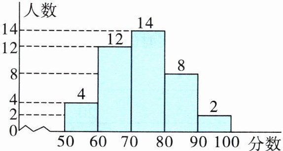 5. 如图是七(2)班一次数学考试成绩的频数分布直方图(每组包含最大值,不包含最小值).下列说法不正确的是 (
