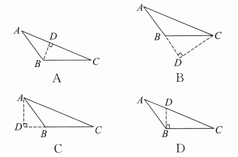 3. 在如图所示的图形中,正确画出△ABC的边BC上的高的是 (