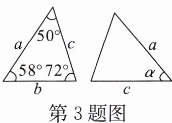 3. 图中的两个三角形全等,则$∠α$等于 (