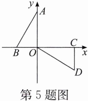 5. 如图,平面直角坐标系中,已知$A(0,5)$,$B(-3,0)$. 若$△AOB≌△OCD$,则点$D$的坐标是 (