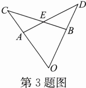3. 如图,$OA= OB,OC= OD,∠O= 60^{\circ },∠C= 35^{\circ }$,则$∠DAO$的度数是(
