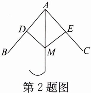 2. 如图是雨伞在开合过程中某时刻的截面图,伞骨$AB = AC$,点$D,E分别是AB,AC$的中点,$DM,EM$是连接弹簧和伞骨的支架,且$DM = EM$,已知弹簧$M$在向上滑动的过程中,总有$\triangle ADM\cong \triangle AEM$,其判定的依据是 (
