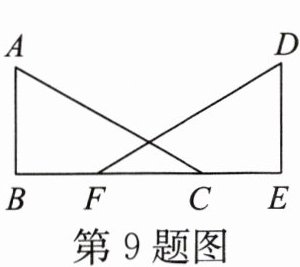 9. 如图,在$Rt△ABC与Rt△DEF$中,$∠B= ∠E= 90^{\circ },AC= DF,AB= DE,∠A= 50^{\circ }$,则$∠DFE= $