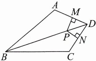 10. 如图,$BD平分∠ABC$,$AB = BC$,点$P在BD$上,$PM⊥AD$,$PN⊥CD$,$M$,$N$为垂足。求证:$PM = PN$。