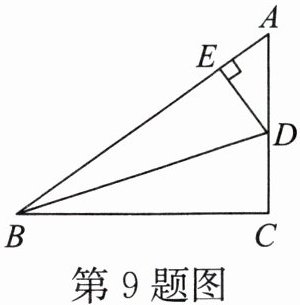 9. 如图,在$Rt△ABC$中,$∠C = 90^{\circ}$,$BD是∠ABC$的平分线,$DE⊥AB$,垂足为$E$。若$AC = 5$,$DE = 2$,则$AD$的长为____
