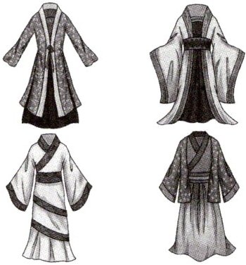 What hanfu is like is not fixed(固定的) since each Han-dominated(汉族统治的) dynasty had its own style, but the clothes are usually loose, with sleeves that hang down to the knees and flowing robes that drape around the body.