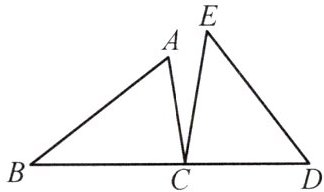 证明:因为在 $ \triangle ABC $ 和 $ \triangle DEC $ 中,$ \left\{ \begin{array} { l } { \angle A = \angle D, } \\ { A B = D E, } \\ { \angle B = \angle E, } \end{array} \right. $