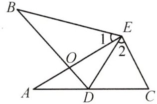 所以 $ \angle 1 + \angle A E D = \angle 2 + \angle A E D $,