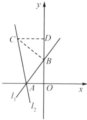 (2) ①如图,过点B作BC⊥AB交l₂于点C,过点C作CD⊥y轴于点D。
