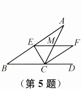 5. 如图,在$\triangle ABC$中,$CE平分\angle ACB$,$CF平分\angle ACD$,且$EF// BC交AC于点M$。若$CM = 3$,则$CE^{2} + CF^{2}$的值为( )