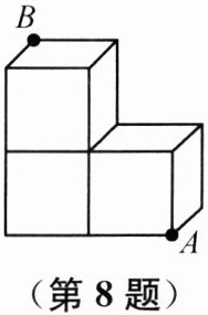 8. (2024南京建邺二模)如图,用3个棱长为1的正方体搭成一个几何体,沿着该几何体的表面从点$A到点B$的所有路径中,最短路径的长是( )