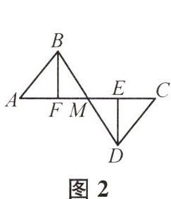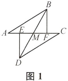 12(新考法)如图1,E,F分别为线段AC上的两个动点,且$DE⊥AC$于点E,$BF⊥AC$于点F,若$AB=CD,BF=DE$,BD交AC于点M.