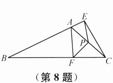 8. 如图,在$\triangle ABC$中,$\angle BAC$为钝角,$AF$,$CE$都是这个三角形的高,$P为AC$的中点. 若$\angle B= 40^{\circ}$,则$\angle EPF$的度数为( )