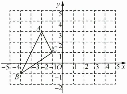 22. (8分)如图,在平面直角坐标系$xOy$中,$\triangle ABC三个顶点的坐标分别是A(-2,3)$,$B(-4,-1)$,$C(-1,1)$,将$\triangle ABC$平移,使点$B与点O$重合,得到$\triangle A_1OC_1$,点$A$,$C的对应点分别为A_1$,$C_1$。
