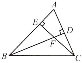 已知$BD\perp AC$,$CE\perp AB$,所以$\angle ADF = \angle AEF = 90^{\circ}$。