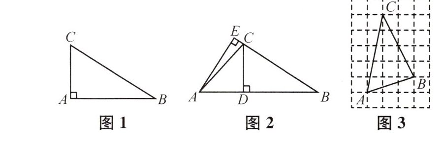 ①如图2,在△ABC中,$ ∠ACB > 90^\circ $,已知两条高CD,AE,请你画出△ABC的第三条高BF;