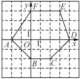 解:A(-2,0),B(0,-2),C(2,-2),D(4,0),E(3,3),F(0,3)。