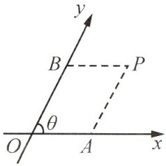 13 新定义阅读材料并解答下列问题:如图,把平面内一条数轴$x$绕原点$O$逆时针旋转角$\theta (0^{\circ}<\theta <90^{\circ})$得到另一条数轴$y$,$x$轴和$y$轴构成一个平面斜坐标系$xOy$。规定:过点$P$作$y$轴的平行线,交$x$轴于点$A$,过点$P$作$x$轴的平行线,交$y$轴于点$B$,若点$A$在$x$轴对应的实数为$a$,点$B$在$y$轴对应的实数为$b$,则称有序实数对$(a,b)$为点$P$在平面斜坐标系$xOy$中的斜坐标。如图,在平面斜坐标系$xOy$中,已知$\theta =60^{\circ}$,点$P$的斜坐标是$(3,6)$。