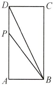 15 如图,在长方形 ABCD 中,$ A B = 2 \mathrm { cm } $,$ B C = 4 \mathrm { cm } $,点 P 按照顺时针方向由点 A 运动到点 D,设点 P 运动的路程为 x cm,图中点 P,B,D 围成的图形的面积为 $ y \mathrm { cm } ^ { 2 } $.