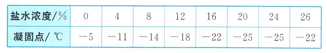 (2)盐水的浓度增大,盐水的凝固点先降低后升高等