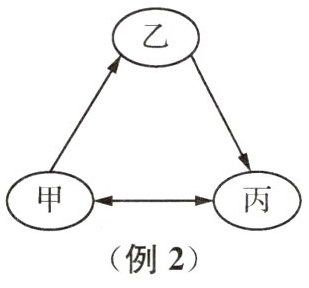 例2 (2024宿迁泗阳期末)自然界中的水循环伴随着水的物态变化过程,季节的变换给大自然带来很多奇妙的景象。如图所示,甲、乙、丙分别代表水的固、液、气三态,下列说法中正确的是 (