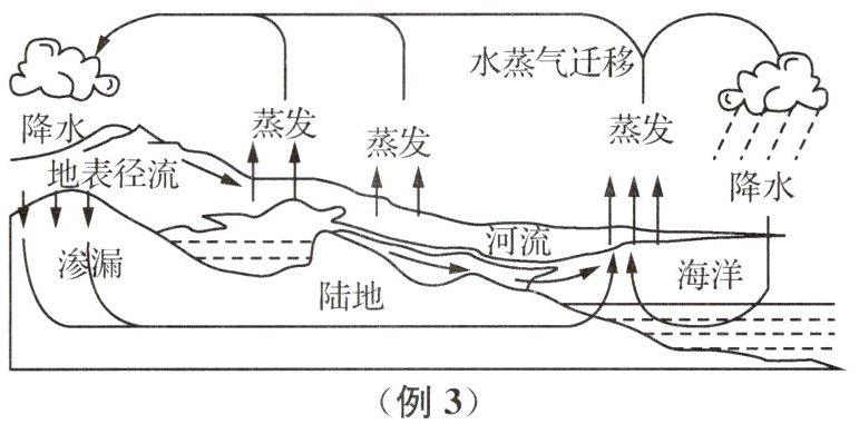 例3 (2024南京玄武模拟)如图所示是自然界中水的循环示意图,下列说法正确的是 (