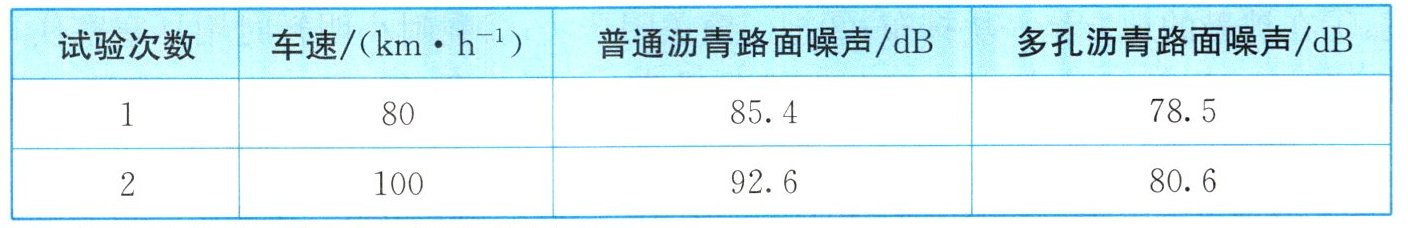 (1) ①同一辆车在车速一定时,沥青路面孔越多,噪声越小 ②同一辆车在相同路面上行驶,车速越大,噪声越大