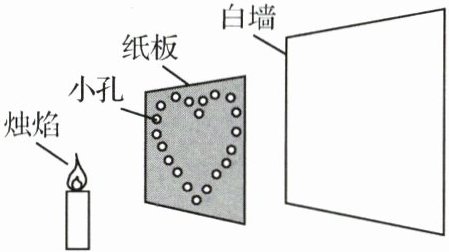 6. (2025 泰州海陵五校联考)如图所示,在一个纸板上打若干个小孔,组成一个心形,在室内让这个纸板在烛焰和白墙之间移动,在墙上能看到的图案是( )