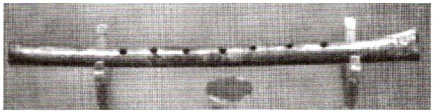 例1 (2023菏泽)1987年我国发现了距今8000多年的一支完整骨笛——贾湖骨笛(如图所示),它是由丹顶鹤尺骨制成的,上有七个音孔.演奏时用手指控制不同音孔的开闭,使它发出声音的