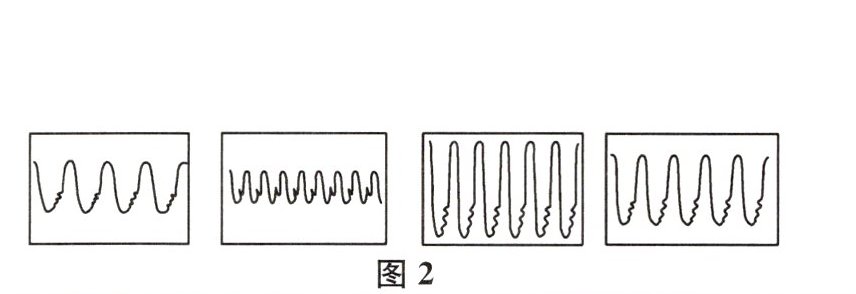 例2 (2025南京育英外国语学校月考)编钟是我国出土的春秋战国时代的乐器,声音悦耳动听.现有四个编钟,如图1所示,其中有一编钟上有一隐形的裂痕,为了查找出这口编钟,用锤子分别敲击它们,将所产生的声波输入示波器中,图2四幅图为示波器中显示的波形图,则敲