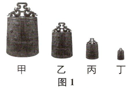 (填“甲”“乙”“丙”或“丁”)编钟用力最大,丁