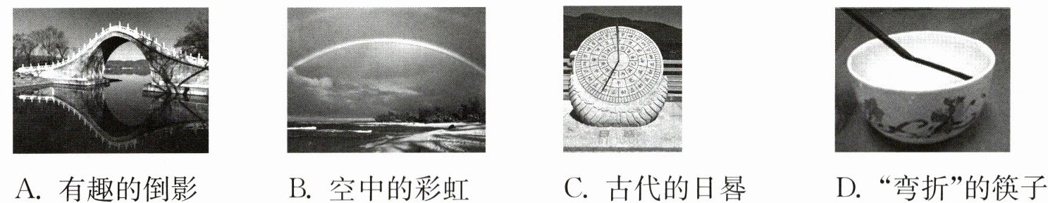 3. (2023 眉山)皮影戏是一种民间戏剧,已成为国家非物质文化遗产,用灯光照射兽皮或纸板做成的“人物”,屏幕上便出现影子. 下列现象中,与皮影戏原理相同的是 ( )