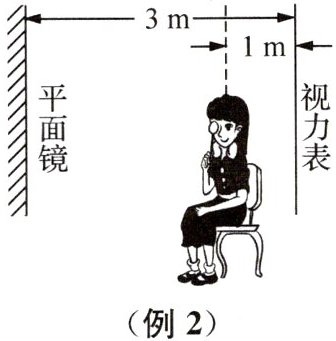 例2 检查视力的时候,视力表放在被测者头部的后上方,被测者识别对面墙上镜子里的像,如图所示,平面镜所成的像是