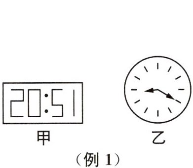 例1 如图所示是时钟在平面镜中所成的像,如果图甲是镜子竖直放置时的像,则甲的实际时间是