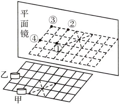 例3 (2025盐城鹿鸣路中学月考)如图所示,在中国象棋棋盘正中央竖立一块垂直于棋盘的平面镜,棋子“象”由甲移到乙,则平面镜中“象”的移动是 (