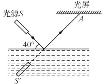 12 (2025常州溧阳期中)如图所示,固定在水面上方的光源S发出一束光,经水面反射后在光屏上形成一个光斑A,知入射光与水面的夹角为40°,S'是光源在水中所成的像.下列说法正确的是 (