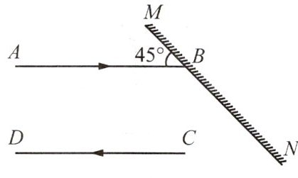 11 如图所示,一束光AB射向平面镜MN,经MN反射后的光线射向另一平面镜M'N'(图中未画出),再经M'N'反射后沿CD射出,CD//AB.