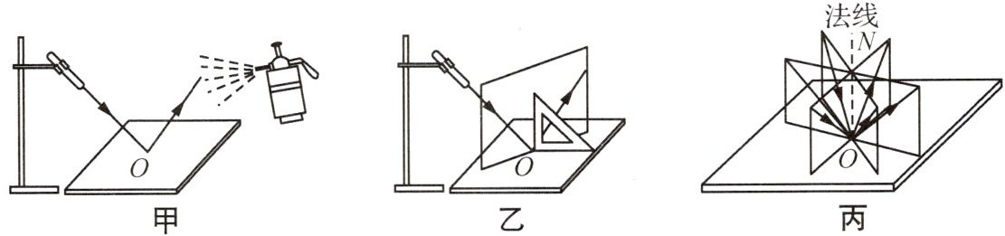 ;他们重复上述步骤,得到了更多这样的平面,如图丙所示.由此得出:在光的反射现象中,反射光线、入射光线与法线在同一平面