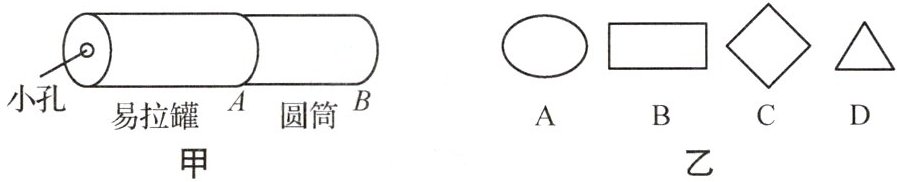 (3)小明用小孔成像观察仪观察时发现:孔开得较大时,光屏上出现了一个光斑.为了研究孔的大小对光斑形状的影响,小华设计了四种不同形状的孔(图乙),并用一张卡片逐渐覆盖在孔上,观察光斑形状的变化情况.图乙中合乎要求的是图