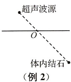 例2 (2024天长模拟)现代医学中常用超声波击碎人体内的结石,超声波从空气中斜射人人体后也类似光从玻璃斜射人空气一样要发生折射,如图所示,超声波进入人体击碎结石时,人射点应在O点的