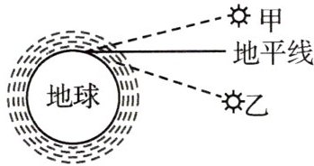 (填“甲”或“乙”)的位置,若大气层消失,则白天的时间会变短