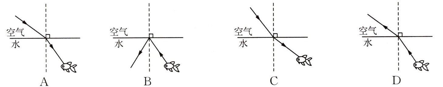 例3 (2025常州新北期中)用鱼叉刺向水里的鱼往往刺不中,下列光路图能正确解释人眼看到鱼,却不容易刺到鱼的是 (